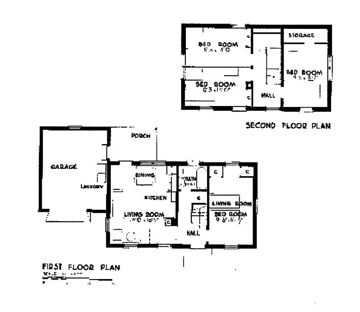 Above, John C. Allen (third from right) and his drywall crew at Aberdeen Gardens, circa 1937, and floor plan of Aberdeen Gardens home.