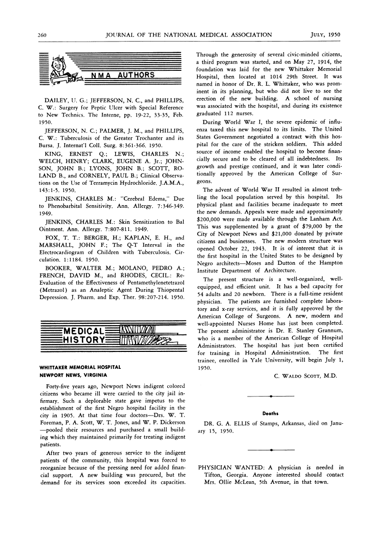 A few years earlier, the Journal of the National Medical Association printed this history of the hospital:
