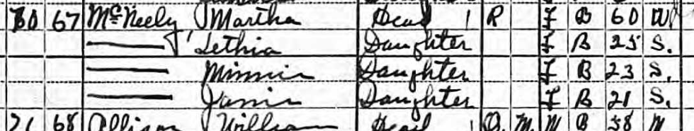 - Elizabeth Simmons (circa 1872-??) probably died before adulthood. Or she is the same person as Moncy Simmons.