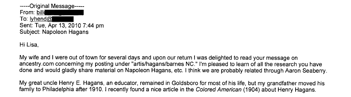 Ten years later, the family had moved about 20 miles east-southeast and appear in the 1870 census of Faisons, Duplin County: James Henderson, 52, mulatto farmer; wife Eliza; and children Ann, 17, Susan, 16, Hepsey, 14, Aleck, 13, John H., 11, Nancy, 6, and Betty, 3, plus James’ son James, 27, and boarders James Ammons and Thomas Cox. (Were the latter two relatives of either James or, more likely, Eliza/Louisa?)
