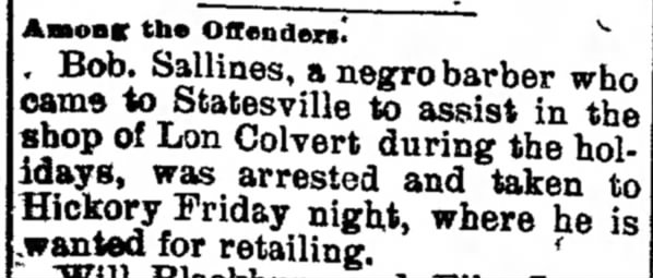 They did not stay long. In 1902, Harriet gave birth to Bertha Mae Hart, whose father Alonzo she married in 1904. By 1910, Harvey Golar, called “Doc,” had left his mother and stepfather’s household and was living in the Wallacetown neighborhood of Statesville with his half-brother and family: Lon W. Colvert, a barber, wife Caroline, and children Mattie, Gola, Walker, Louise, and Margaret (my grandmother). He trained under Lon and went to work in his shop. In the photo below, which can be dated to 1917 by another taken at the same time and showing a calendar, Doc appears with Lon’s son Walker and a client.