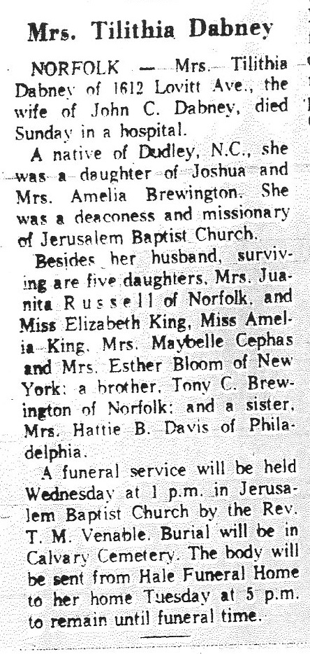 + Sarah Jacobs Silver, 8 Jan 1938. Buried Wayne County [in fact, in the Congregational Church cemetery]. Silver’s great-niece Hattie Henderson (alias Jacobs) was the granddaughter of C.E.’s half-sister Louvicey Artis Aldridge. Silver also lived on Elba Street in Wilson NC, around the corner from C.E.’s Green Street home.