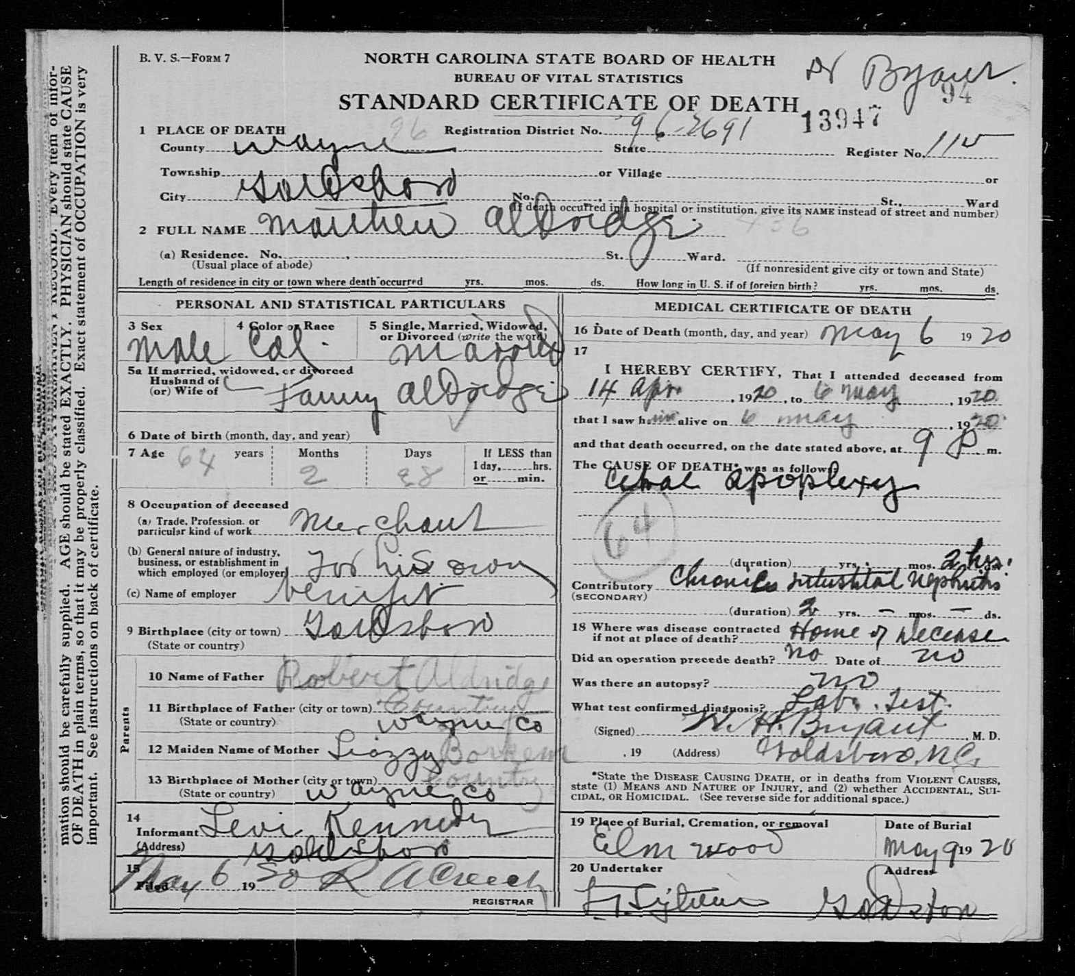 - Incredibly, she cites as the source of the money lent “funds received from my father, as a portion of my interest in his estate.” Funds received from her father’s estate???? Anna’s father, James Henderson — my great-great-great-great-grandfather — died about 1890 in Wayne County, North Carolina. I have found no probate records for him there or anywhere.