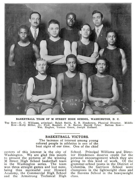 Many thanks to Dena Banks for pointing out this post in Vieilles Annonces’ Flickr feed. It’s from the March 1912 issue of the NAACP’s The Crisis. (The first 25 years of which I have on CD; I need to study this thing more carefully.) Fred Randall was the 17 year-old son of George and Fannie Aldridge Randall, who migrated from Wayne County to Washington DC in the late 1890s. (Fannie Aldridge Randall, formerly known as Frances Aldridge Locust, was the sister of my great-great-grandfather John W. Aldridge.) Randall’s interest in athletics did not end in high school. As just posted here, he went on to become director of the city’s Cardozo Playground.